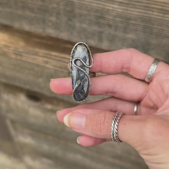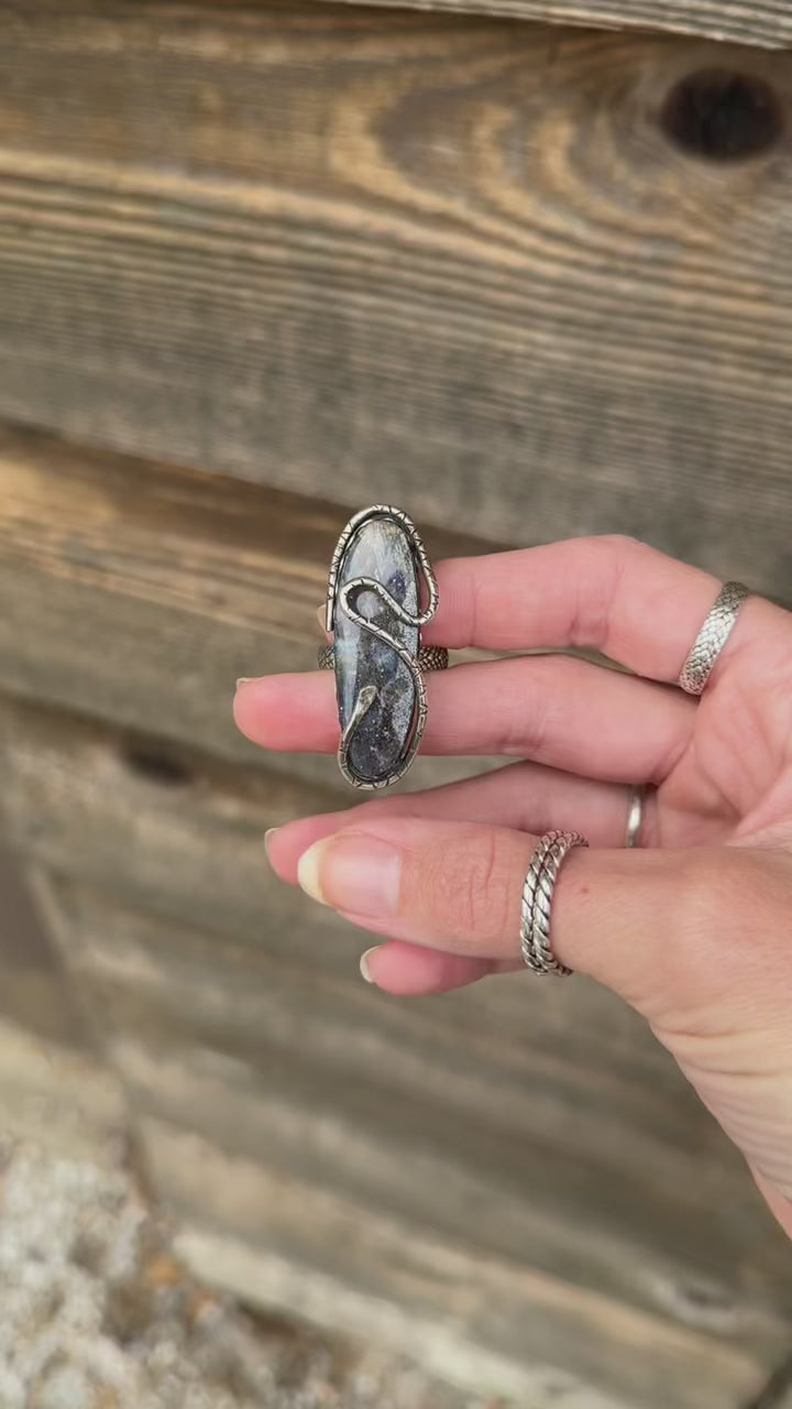 Natural Boulder Opal with a silver snake setting for the rebellious souls | Size 8